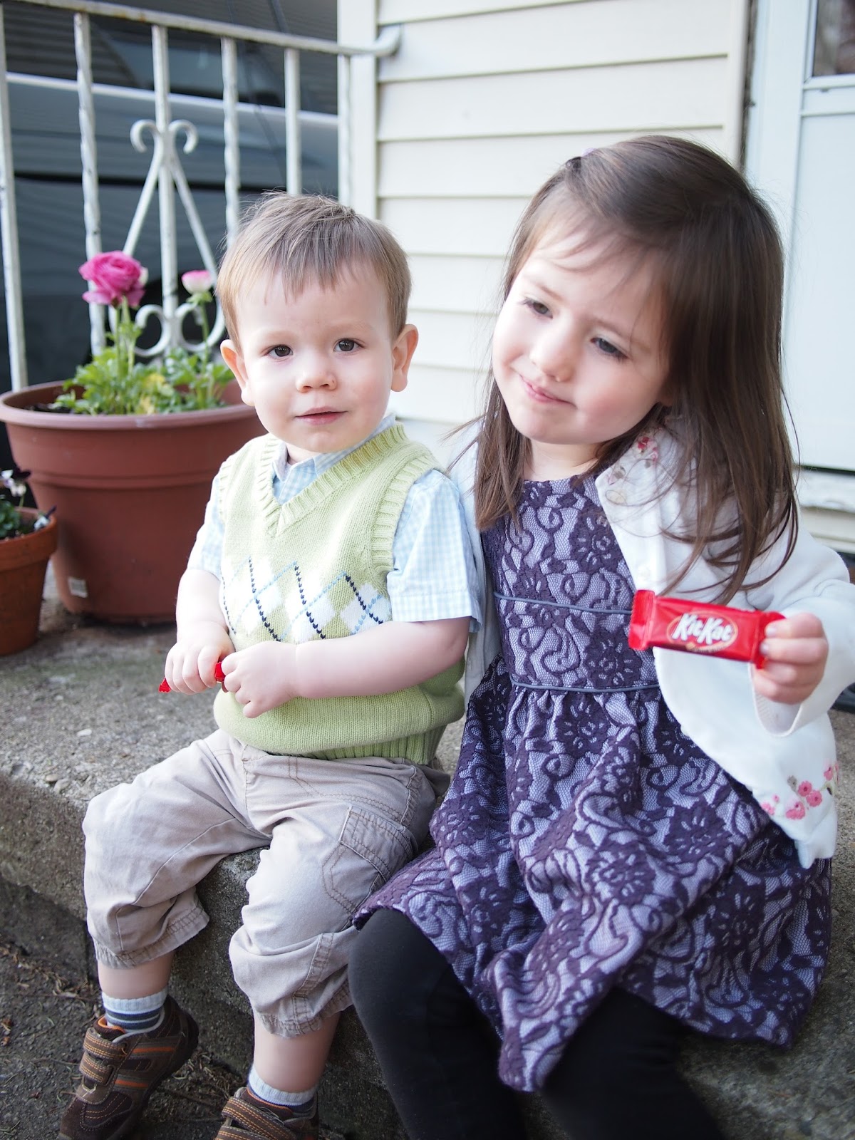 | Eliana was so sweet - she was one of the oldest kids at Morgan's house, so I told her to be sure during the egg hunt that all the little kids had a chance to get eggs too. After she had about 6 eggs in her basket, she stopped collecting eggs for herself and instead gave the eggs she found to William. He only managed to find two eggs before he was distracted by the many fun toys in the yard. I love that she listened to me and that she loves her little brother so much. |